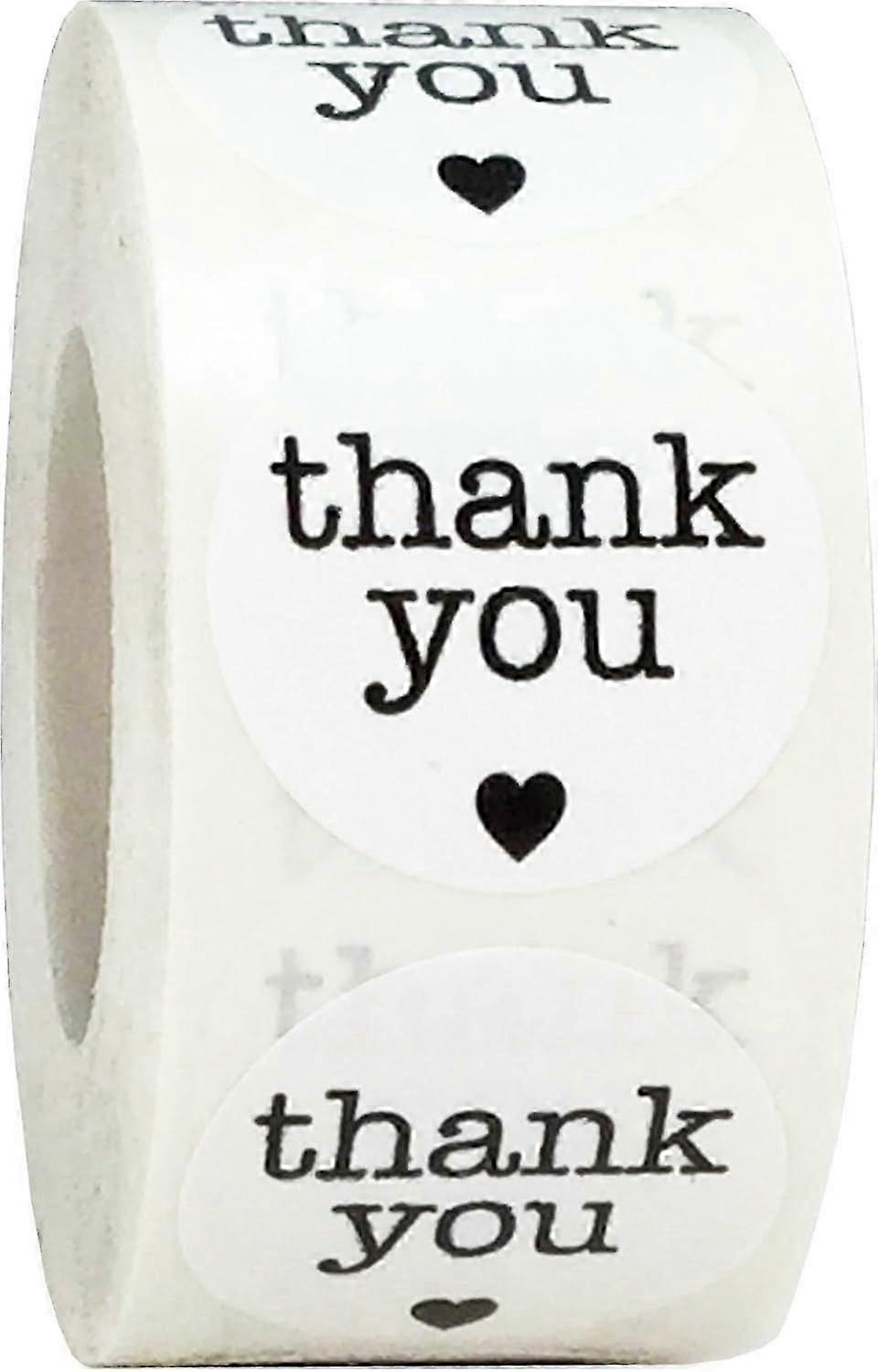 2025 Latest Model YUXNET White with Black Thank You Stickers, 1 Inch Round, 500 Total Labels on a