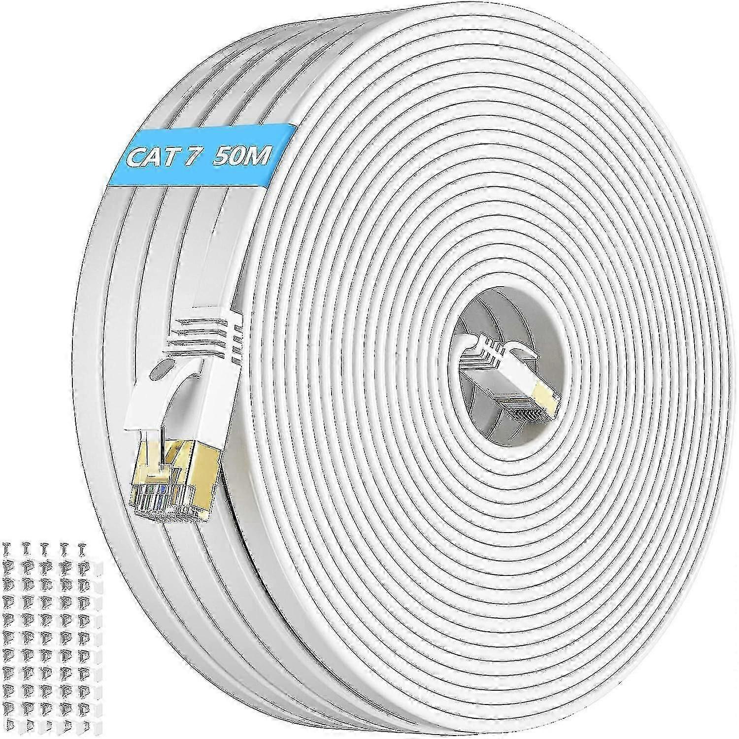 Ethernet Cable 50m Cat 7, High Speed Flat Internet Cable Extra Long 50 Meters White Lan Cable Gigabit Rj45 Patch Cable Ftp Shielded Network Cable 165f
