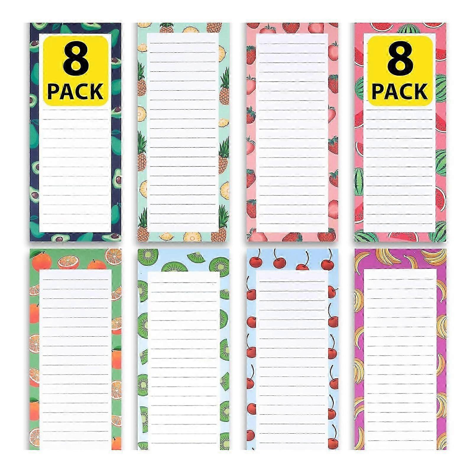 Features: Each memo pad booklet has a full magnetic as its back cover. Perfect for use as fridge note pad, grocery list note pad, to do list note pad. These magnetic notepads can be placed on the kitchen fridge, in the garage, filing cabinet, or gym locker. Take down important note and reminders and never forget what’s important. Suitable for students, homemakers, office workers, and anyone in need of easy note taking solutions. Specifications: Component: Paper Size: about 9x23cm/3.54x9.06'' Package Includes: 8 Pcs/Set Magnetic Notepads(random styles) note: Please allow 1-3cm errors due to manual measurement. Due to the difference betweeen different monitors,the picture may not reflect the actual color of the item.
