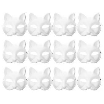 12pcs ब्लैंक मास्क कैट मास्क कॉस्टयूम कॉस्प्ले मास्क किंडरगार्टन DIY अनपेंटेड कैट मास्क