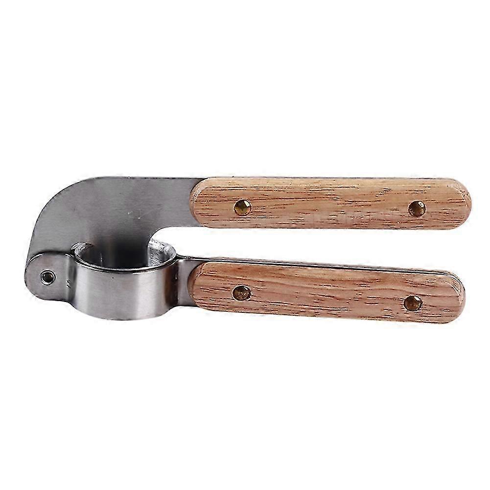 Stainless Steel Garlic Press, Garlic Press Crusher, Professional Garlic Crushing Tool with Wooden Handle