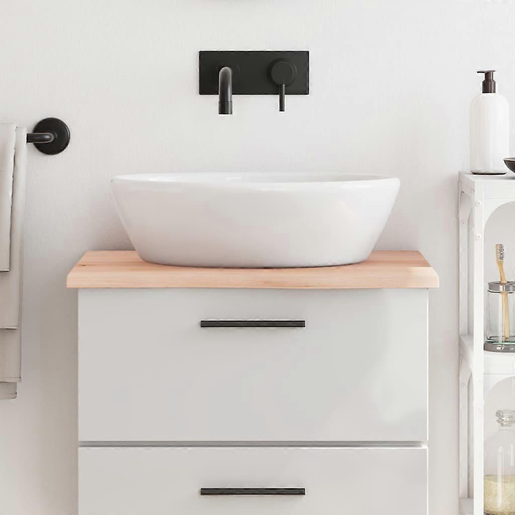 Hast du vor, dein Badezimmer zu renovieren? Dann ist diese Waschtischplatte aus Holz eine perfekte Wahl für dich Stabile Konstruktion: Diese Waschtischplatte besteht aus massivem Eichenholz, einem wunderschönen Naturmaterial. Eichenholz weist eine mittelbraune Farbe und eine dichte Maserung auf, was zu seiner einzigartigen Optik beiträgt.Vielseitig einsetzbar: Dieses Holzplatte lässt sich nicht nur als Waschtischplatte verwenden, sondern auch mit verschiedenen Gestellen kombinieren, um als Regal, Schrankoberplatte, Schreibtischplatte, Tischplatte usw. zu dienen.Unbehandelte Oberfläche: Da die Waschtischplatte aus massivem, unbehandeltem Eichenholz gefertigt ist, kannst du ihre natürliche Farbe beibehalten, sie aber auch nach Belieben anstreichen oder lackieren.Handgefertigt mit Naturkante: Diese Waschtischplatte ist handgefertigt und besitzt eine Naturkante. Dabei sind Aststellen, Risse, leicht geschwungene Formen und verschiedene Farbtöne Teil des Eichenholzes und machen jeden Waschtisch zu einem Unikat. Die Lieferung erfolgt nach dem Zufallsprinzip. Gut zu wissen:Als Naturprodukt kann Holz Aststellen und Unebenheiten aufweisen, die wir mit schwarzer Füllung ausfüllen, um ein glattes Aussehen zu gewährleisten. Material: Massives Eichenholz (unbehandelt)Abmessungen: 60 x 60 x 2 cm (L x B x T)Max. Belastbarkeit: 28,8 kgMit Naturkante