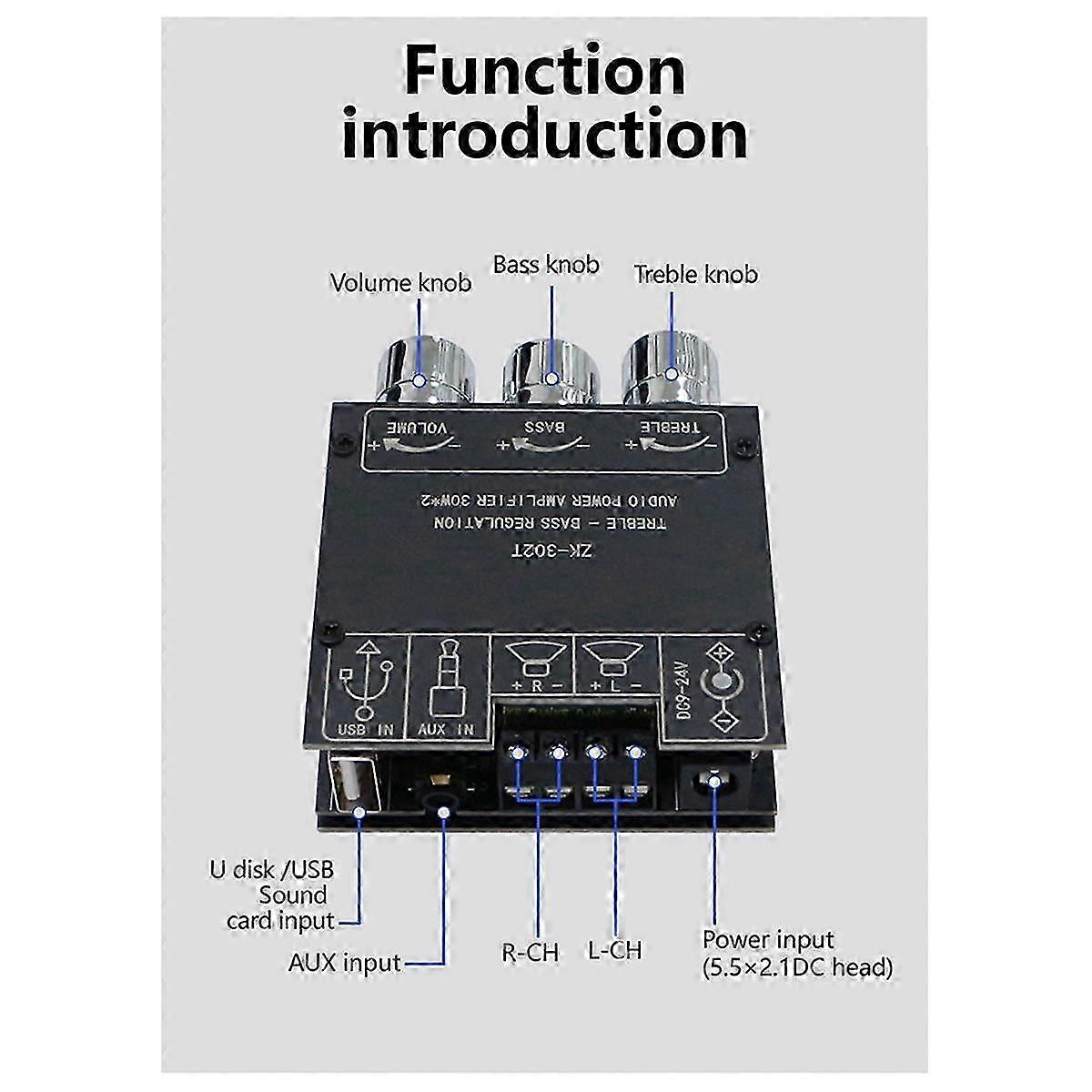 -302t Bluetooth Digital Power Amplifier Module 2.0 Stereo Dual Channel 30w+30w With High Low Tones