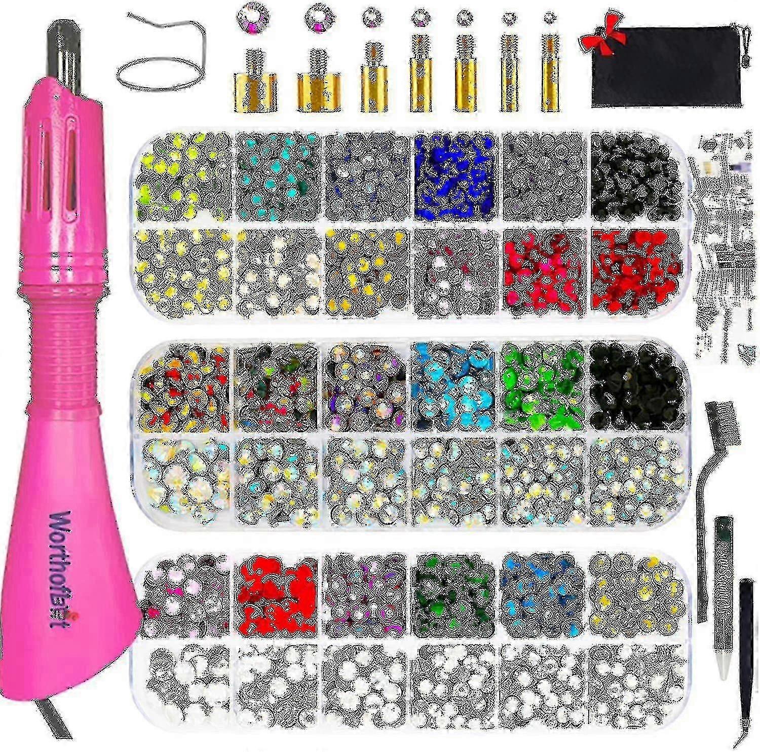 Rhinestone Setter, Applicator Toolkit, Hot Fixed Wand Bedazzler Kit, 4080pcs, Ab Crystal, Clear, 14 Colors, 7 Tips, 4 Gems Sizes, Tweezers, , Jewel Pi