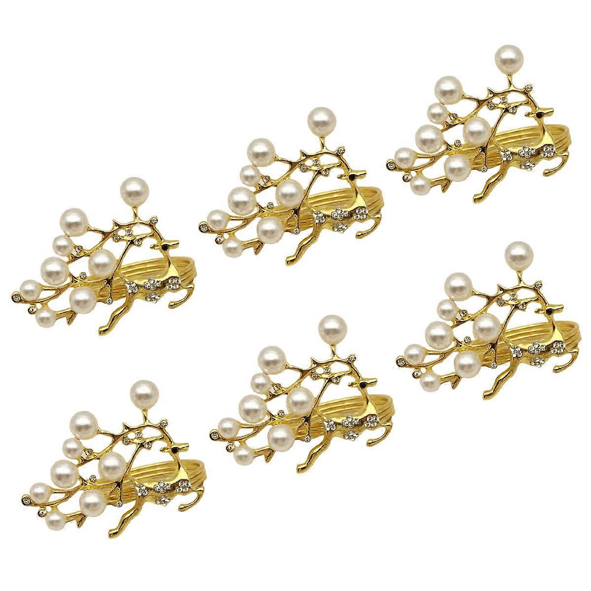 These creative napkin rings feature a rhinestones and pearl on a beautiful elk for a touch of elegance. No matter for your winter table nor your Christmas dinner party, these napkin rings are perfect for the season. Great for your bridal shower, wedding, christmas party an elegant dinner with bling. Features - Color: Golden. - Material: alloy. - Size: 5.2x4x5cm. - and , will become eye-catching items for dinning table decoration. - Suitable occasions: suitable for a variety of occasions, such as christmas, family gatherings, birthday party, home decoration, parties, Christmas dinner table decor. - Made of excellent material, these elk design napkin rings are very charming and delicate. - The rings are quite versatile and can work in casual or formal situations. - Create a lasting impression with these napkin rings to your bridal shower, wedding, christmas party an elegant dinner with bling. - These napkin rings are used for christmas party dinner decor and restaurant table setting. Package list: 6 x Napkin Rings