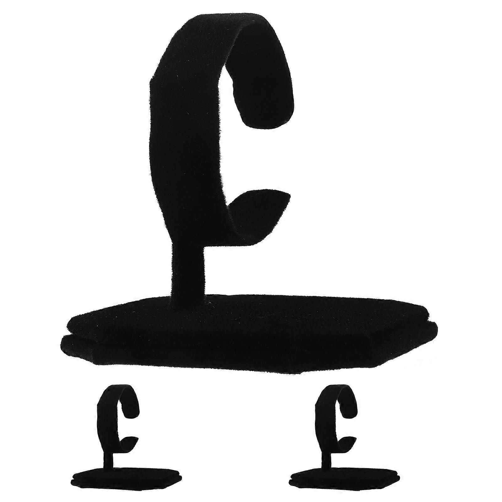 This rack can provide overall protection and prevents your watches from scratches, dropping, dirty and other damages.Makes a practical and elegant stand whatever for display your jewelry, watches in a shop or on your dressing table. It can as a decoration, also a useful props of photography camera. Features - Color: Black. - Material: Lint. - Size: 9.00X8.20X8.20cm/3.54X3.22X3.22in - designed, can be used as bracelet or watch display holder. - External wrapped lint, fine workmanship, upgrade the grade of the product. - The display is made of iron, you can adjust the bending to show the jewelry better. - Suitable for displaying or placing your watches or bracelets. - A stylish yourself and friends. Package list: 3 Display Rack
