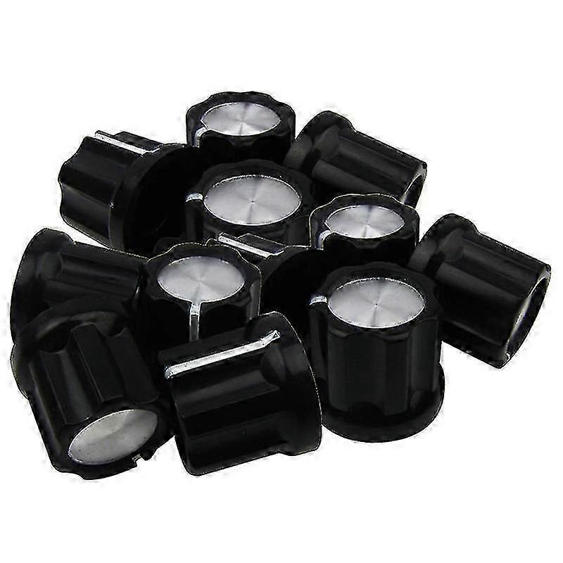 Vintage and classical style. Plastic control potentiometer knob to be assembled to a potentiometer for easier rotation. If your knobs are dirty, dingy and , or just to dress up your guitar...these will work great. Fit for D-type shaft pots of most . Color: Black Material: Made of plastic Size:Knob bottom diameter:17mm;Knob top diameter:15mm;Height: 15mm. Style:0degree Guitar Pot Knob. Package include: 12pcs Pot Knobs (only the knob ,no pot.) Only the above package content, other products are not included. Note: Light and different displays may cause the color of the item in the picture a little different from the real thing. The measurement allowed error is +/- 1-3cm.