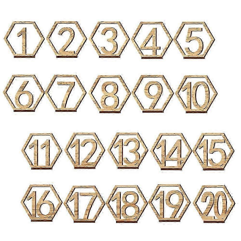 1-20 Wooden Table Number Plate Hexagonal Hollow Table Number Card Digital Seat Card with Sturdy Holder Base