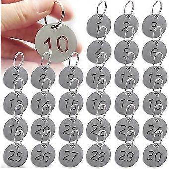 1-30 number tags, round number tags with key ring, stainless steel number tags for keys, hangers, lockers, bars, spas, hotels