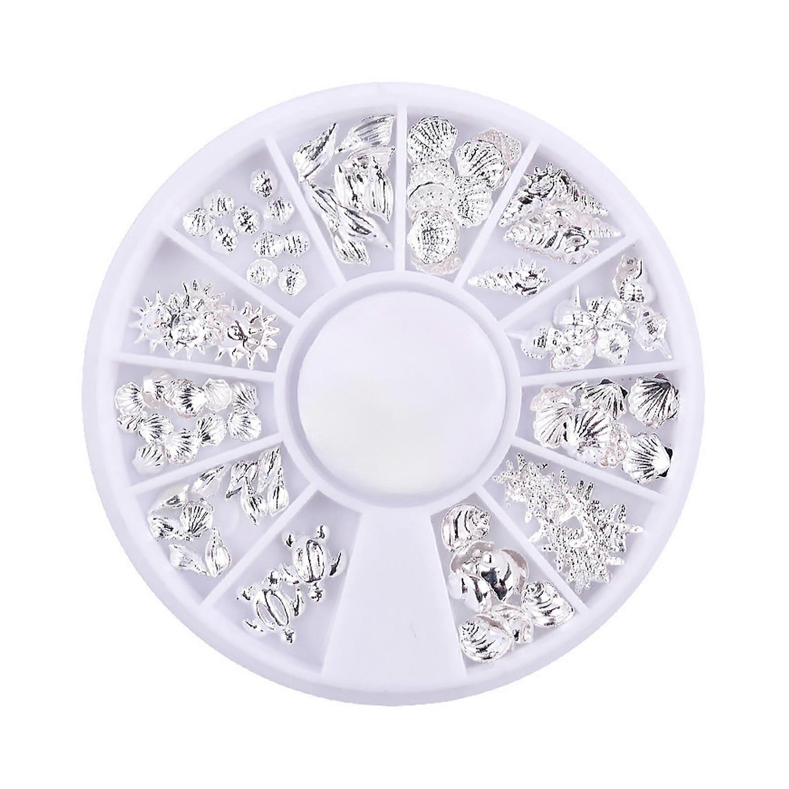 1 Box Ocean Theme Metal Stud Sea Starfish for Shell for Turtle Slice Flakes 3D Nail Art Decor DIY Manicure Tools Gold/Si Silver