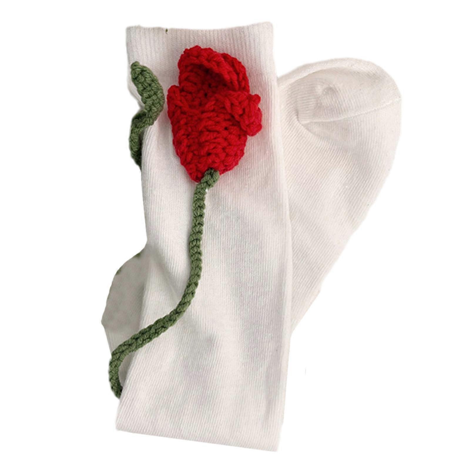 1 Pair Women Girls Sweet Lolita Style Knee High Socks Crocheted Flower Stockings
