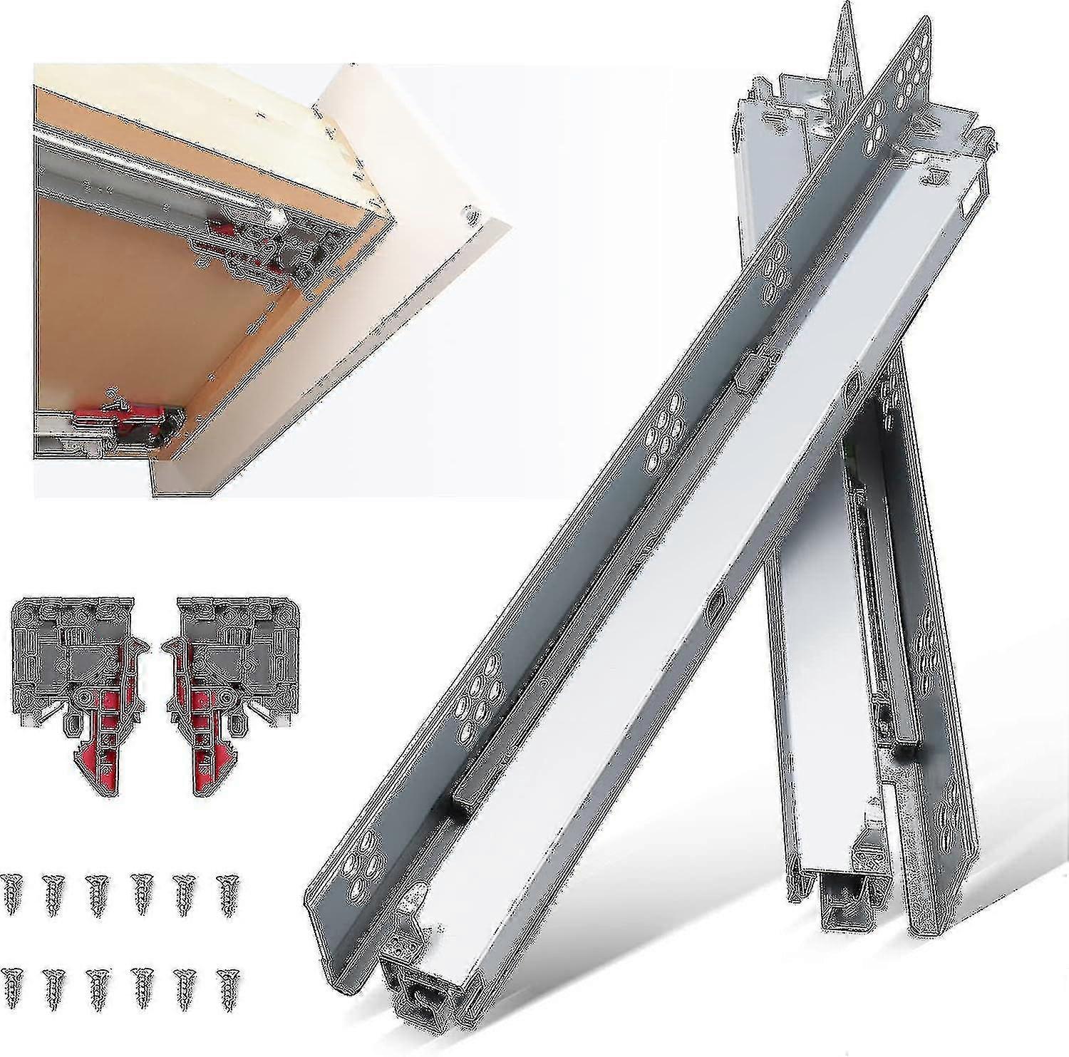 1 Pairs 18 Inch Undermount Drawer Slides, Self Soft Close Full Extension Drawer Rails Concealed Drawer Runners Adjustable Locking Devices Mounting Br
