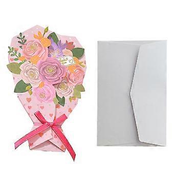 1 Set Greeting Card Foldable Diy Handwriting Paper Art 3d Folding Flower Mother's Day Card With Envelope For Present Qinghai