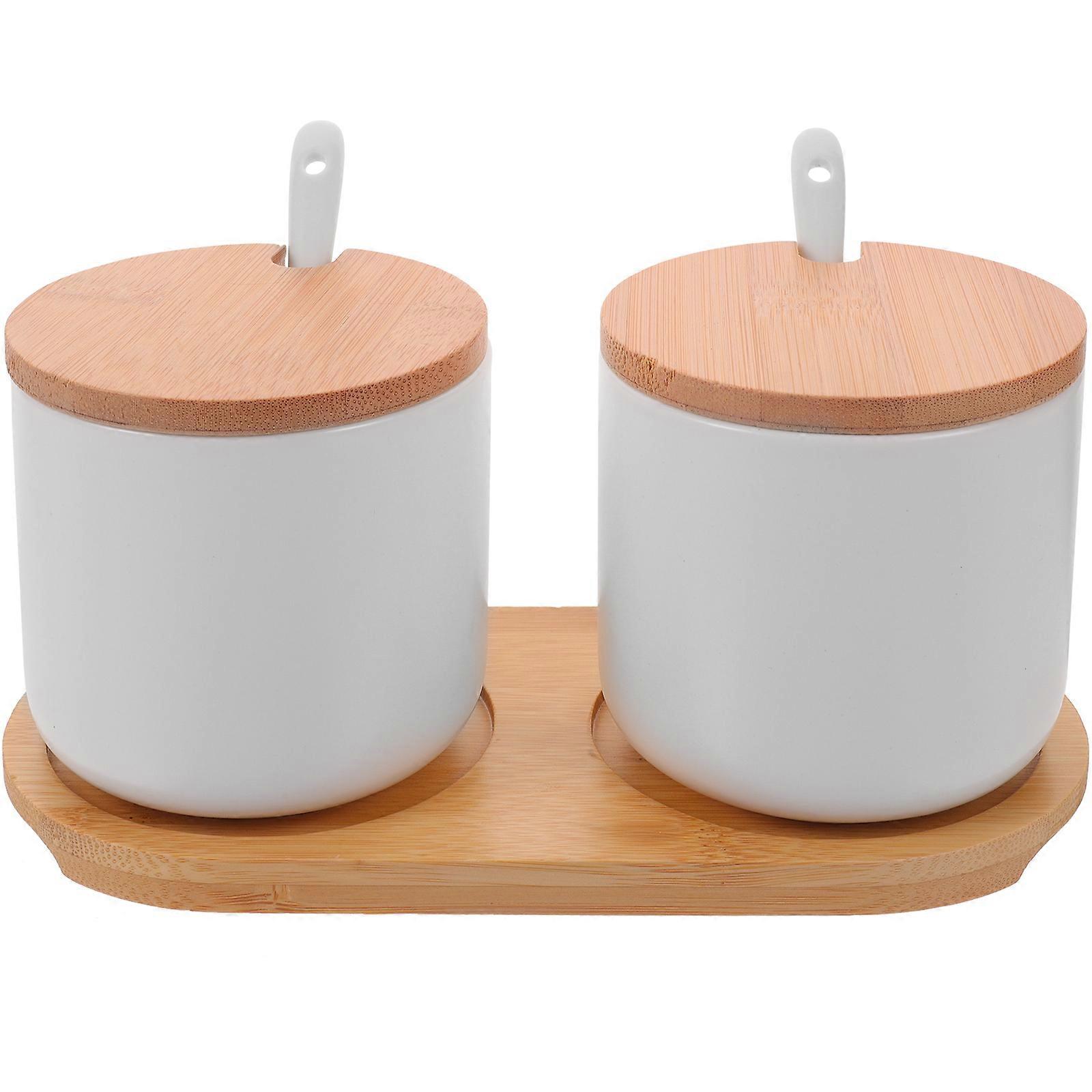1 Set of Ceramic Seasoning Jar with Tray Seasoning Container Spice Storage Holder