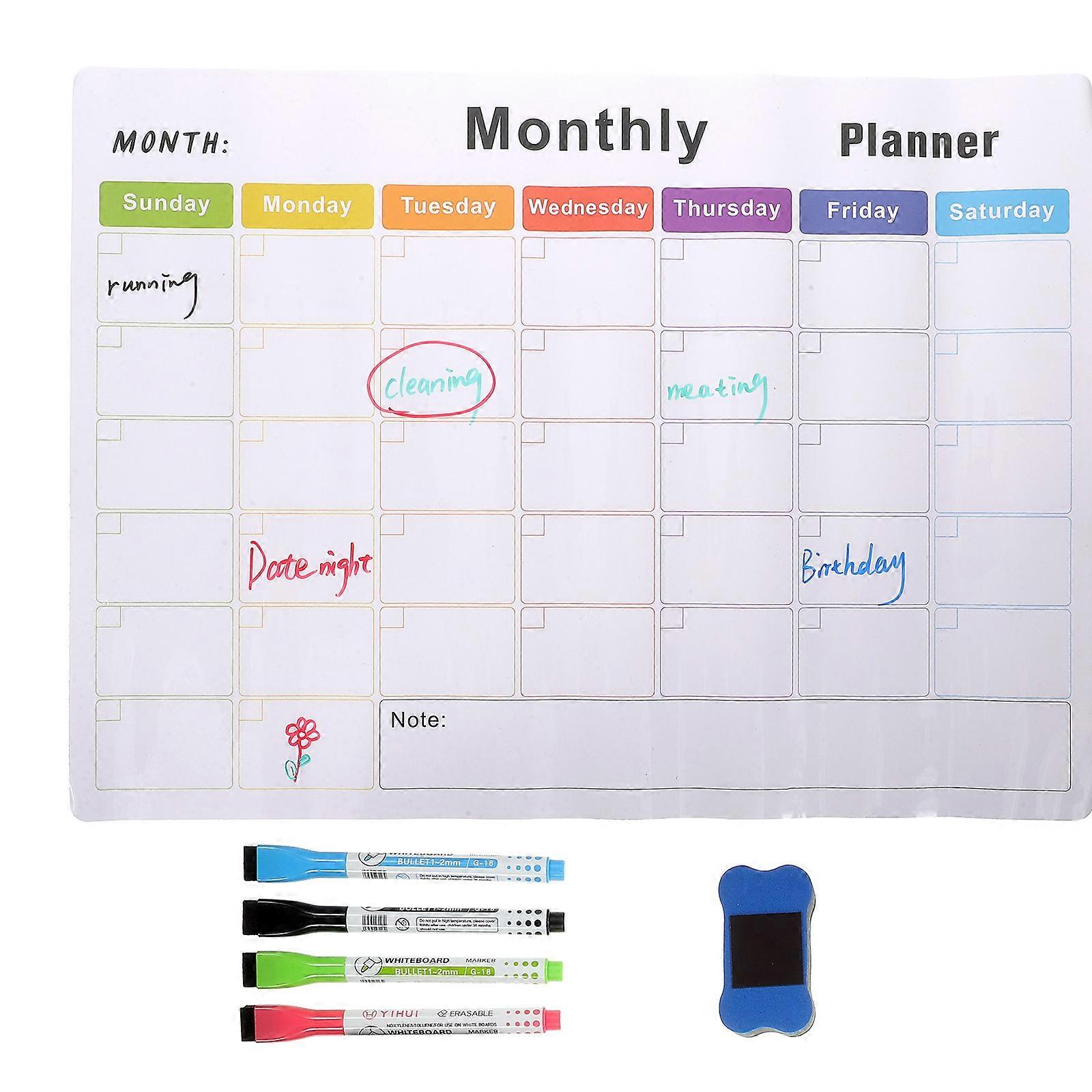 1 Set of Refrigerator Magnetic Memo Board Monthly Planner Write Board Erasable Calendar Board