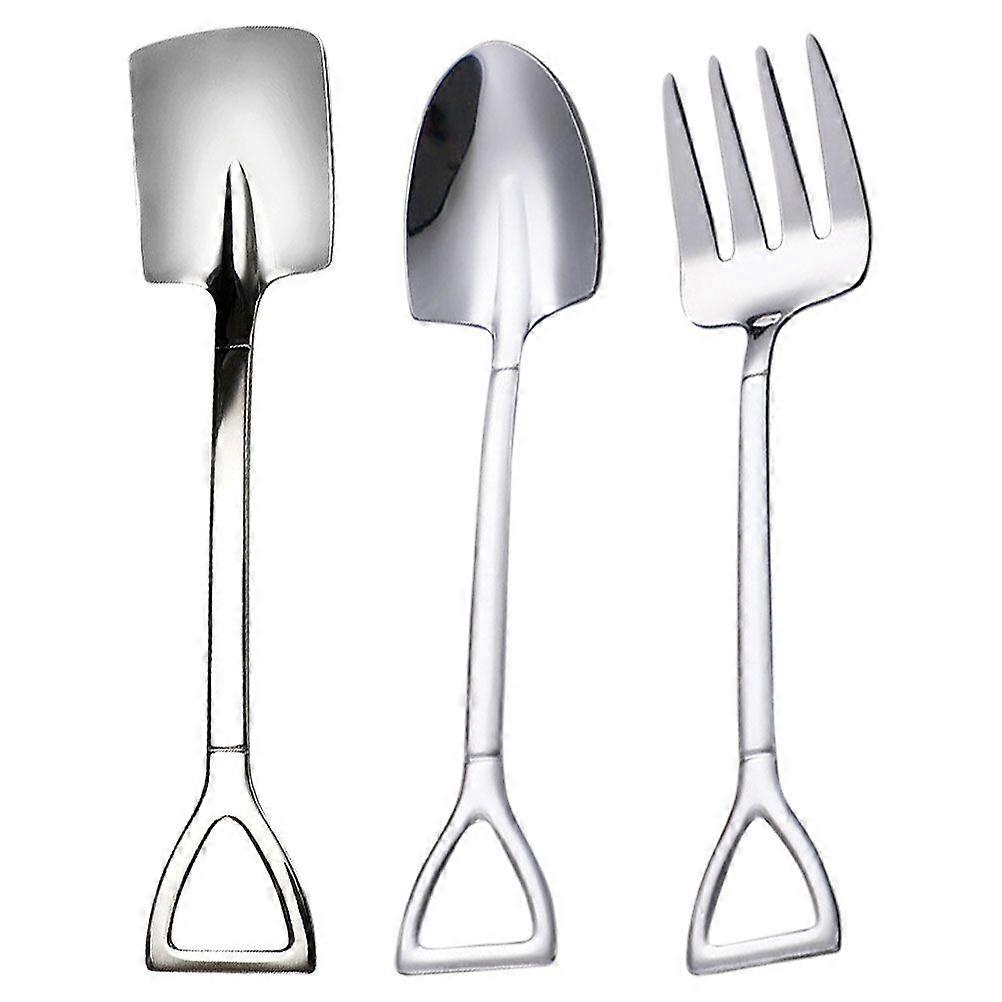 1 Set of Water Mixing Spoon Soup Enjoy Spoon Cake Fork Metal Handle Fork Spoon