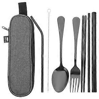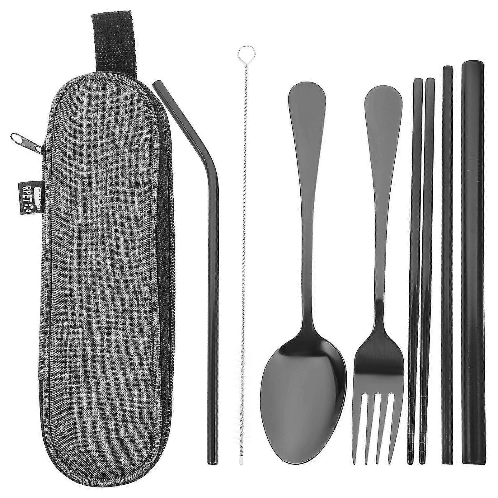 1 Set Portable Cookware Set Travel Picnic Camping Tableware Fork Spoon Cutter Scissors with Storage Bag