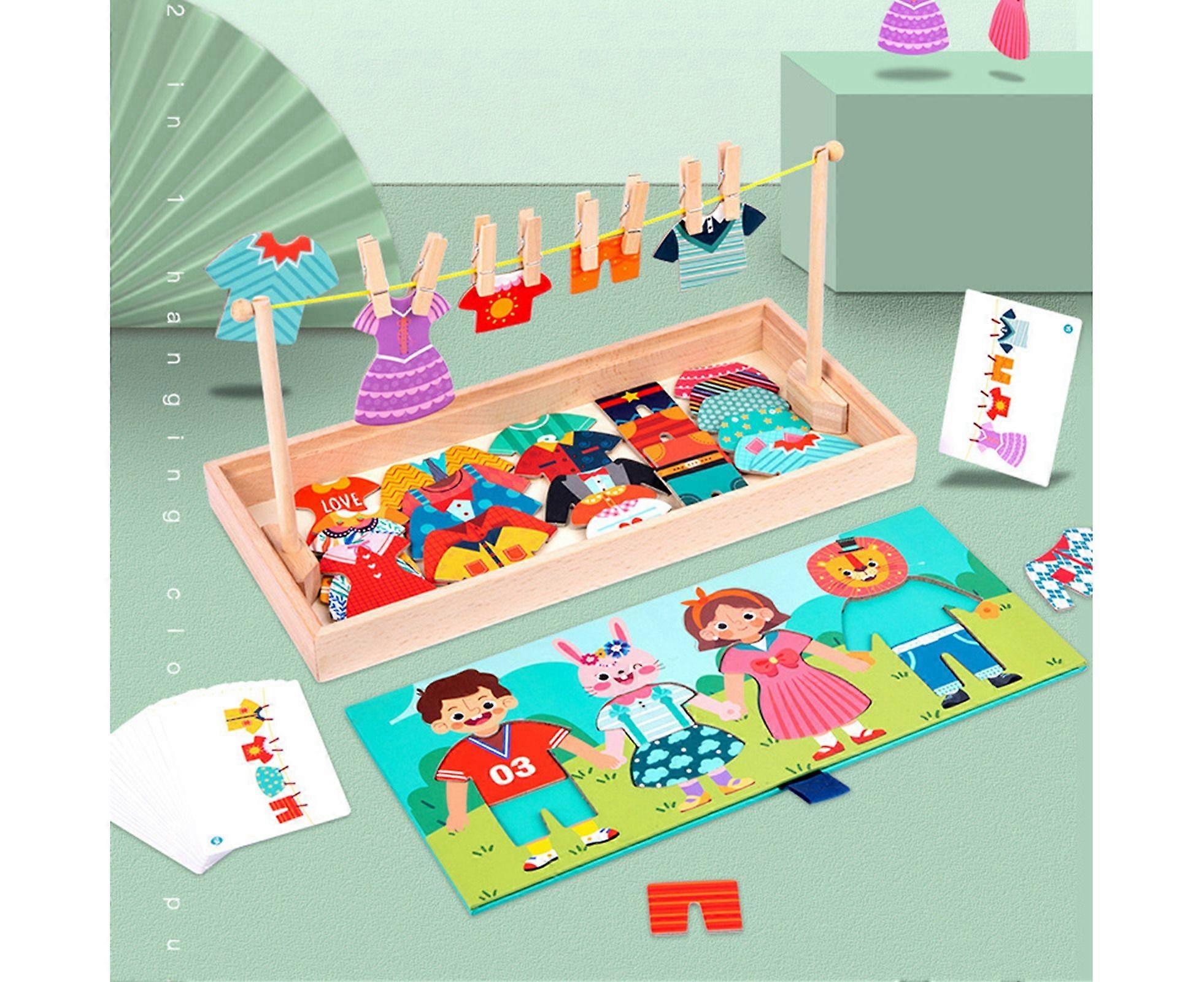1 Set Wooden Puzzle Smooth Edges No Smell Bright Color Drying-up Changing Clothes Design Jigsaw Toy Daily Use