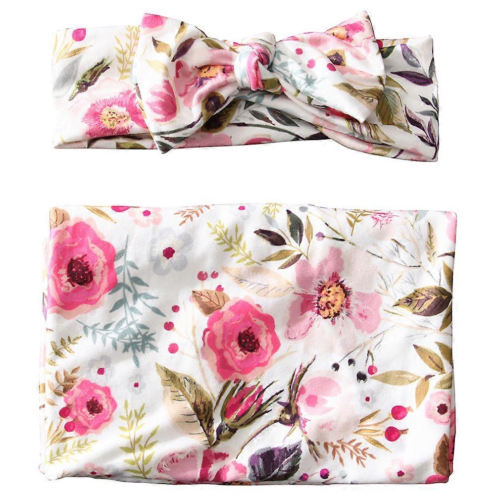 1 Set/2pcs Pretty Infant Swaddle Wrap with Headband Set Photography Prop