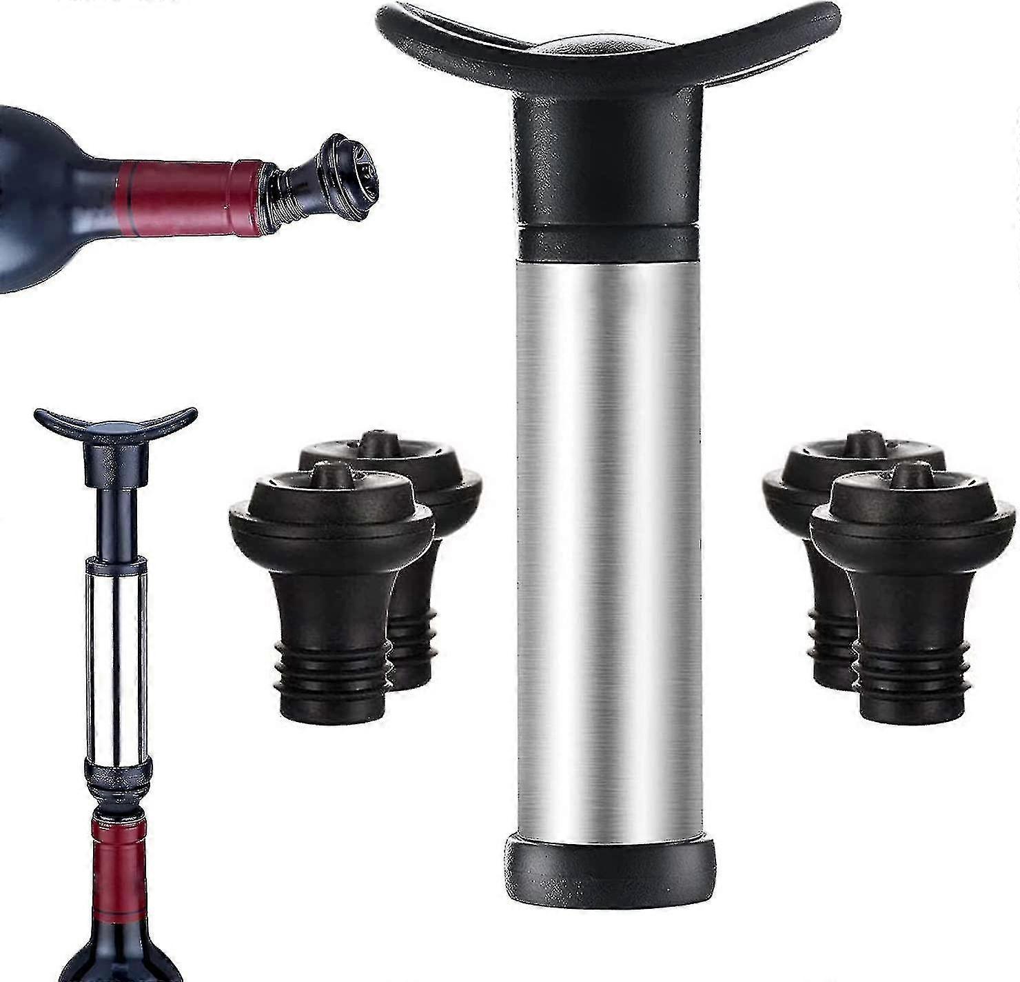 1 Wine Saver Vacuum Pump With 4 Stoppers, Reusable Bottle Sealer Keeps Wine Fresh Keeps Your Wine Bottles Fresh For Days