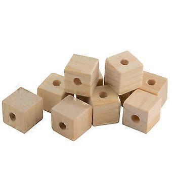 1" Wood Cubes With Holes - 100 Pack - Unfinished Solid Wood Beads For Diy Craft And Building Projects