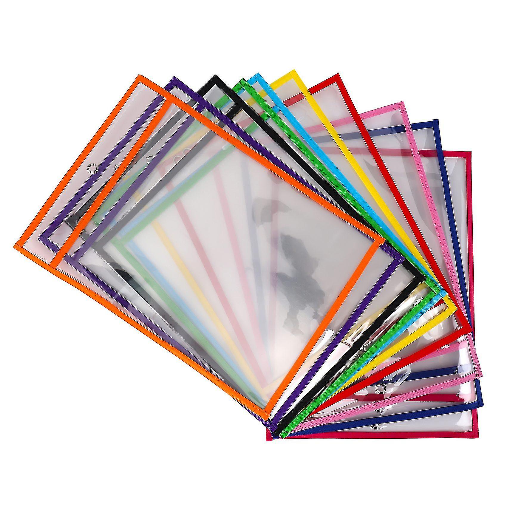 10 Dry Erase Pockets, Oversize 9 X 12 Inch Pockets, Perfect Classroom Organization, Reusable Dry Er