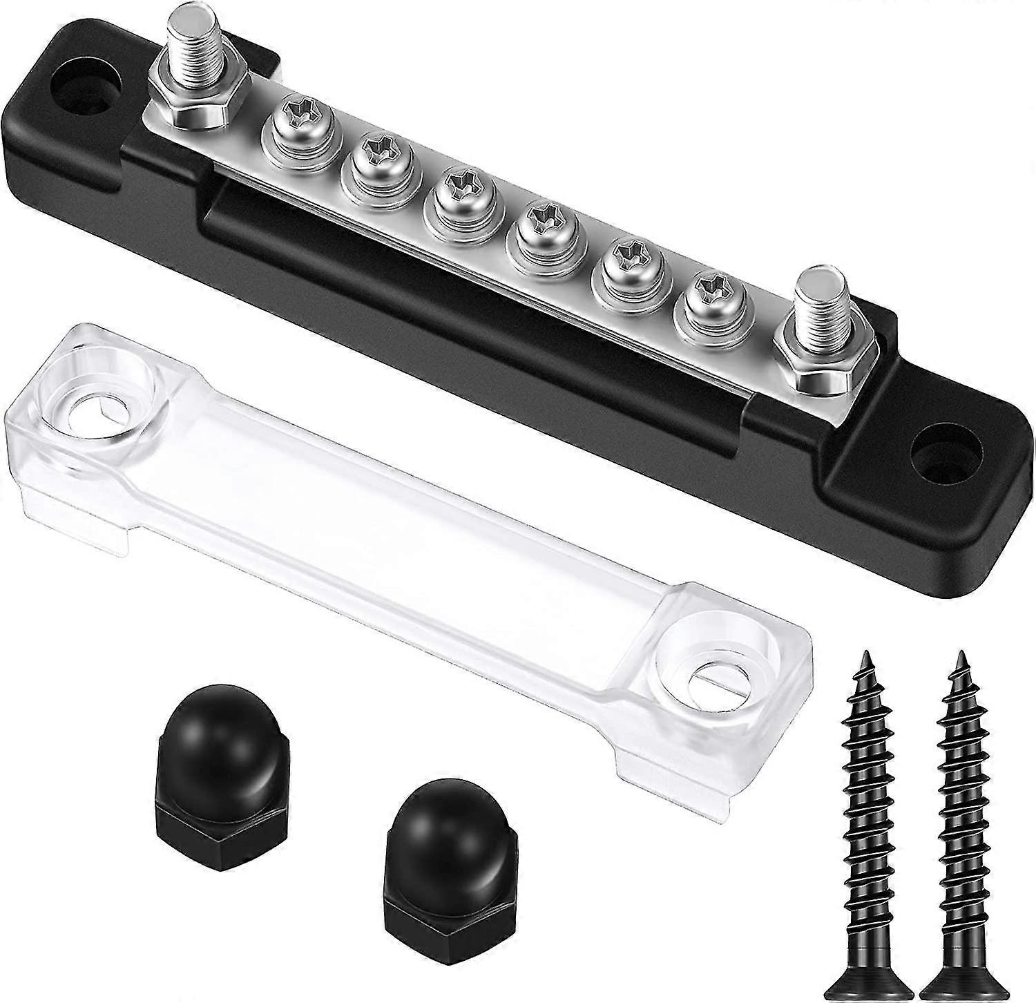 10-gang Busbar With Cover 6 Terminal Bus Bar 150 A Busbar Block With Cover Power Distribution Terminal Block W/ 6 Pieces M4 Screws 2 Pieces M6 Studs F