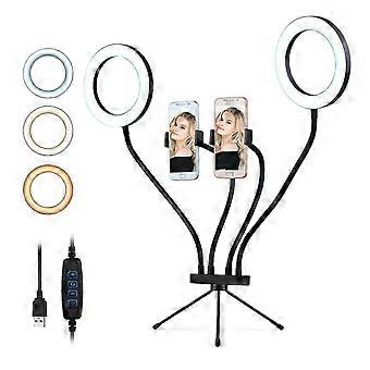 10-Level Dimmable 3000-5000K Dual LED Ring Light with Table Tripod and Dual Phone Holders