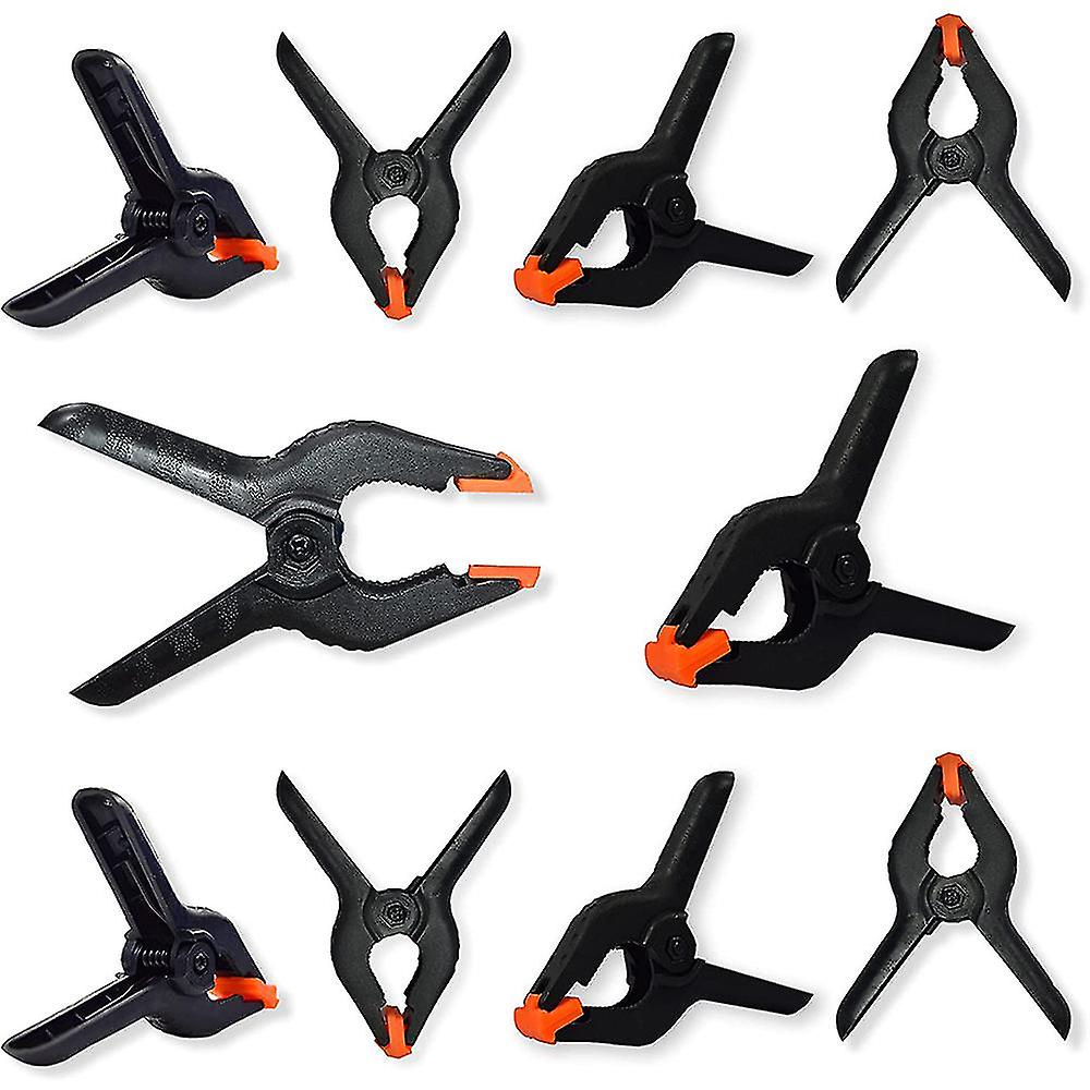 [Quality]: Our plastic clips are made of high quality nylon. Rugged nylon construction keeps items in place, providing long-lasting performance for life. Our background clips are very durable to .[Beautiful Design]: It has an attractive design with a flexible handle can be rotated at different angles to adjust for different objects, and can also be removed and reused. These heavy duty maximum flexibility to grip objects with ease[Signature Strength] The springs in the hand grips are very strong and have a strong grip, applying pressure while holding the . For assembly, joining and gluing activities[Non-Slip Handle]: The nylon clip handle is designed to hold firmly. These squeeze clip handles have a rough and rounded surface, making non-slip, more comfortable to hold, speed up operation, and can be used as a camera clipMaterial:nyloncolour:Black + orangePackage Contents:10 x 4inch Only the above package content, other products are not included.Note: Light and different displays may the color of the item in the a little different from the real thing. The measurement allowed error is +/- 1-3cm.