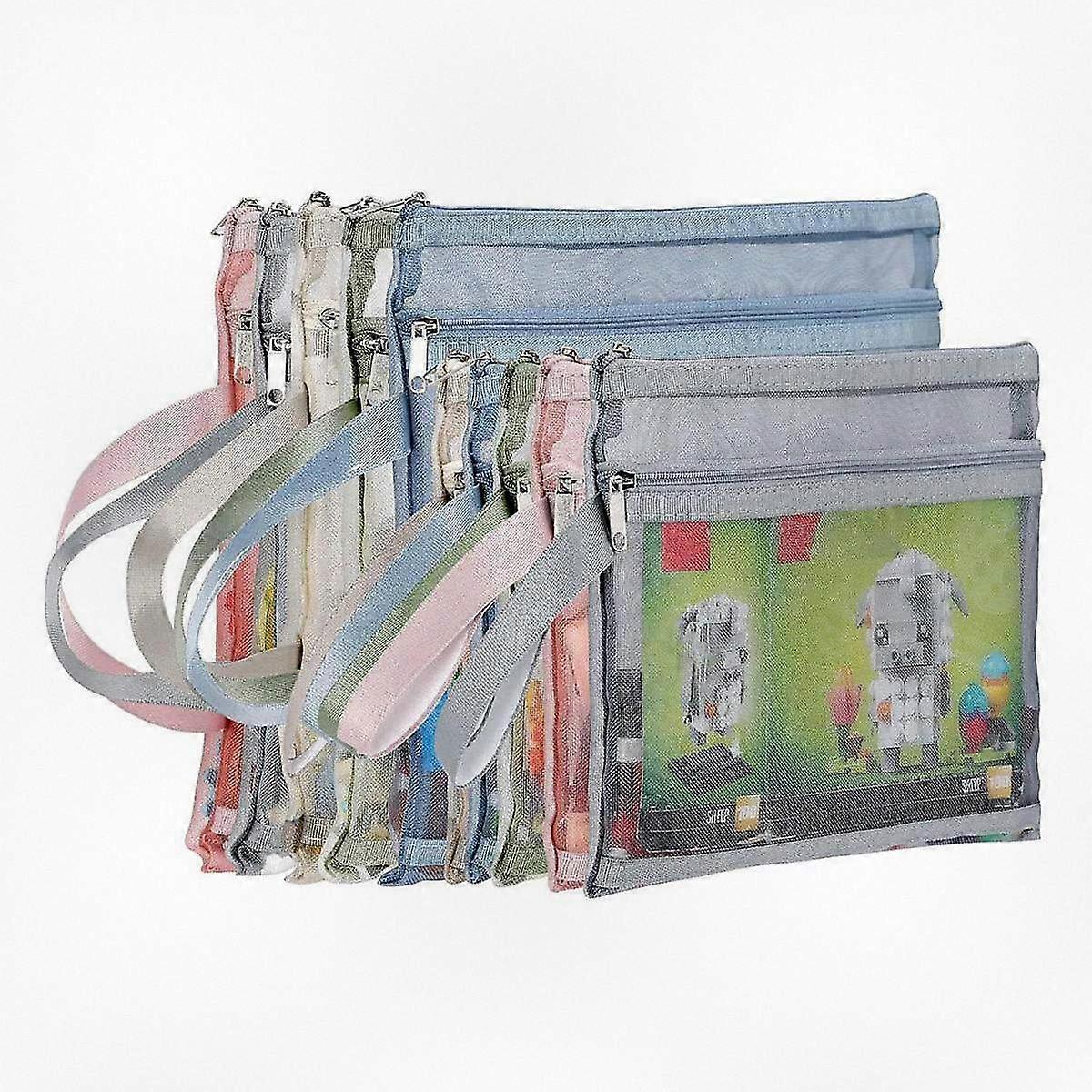 10 Pack Colored Double-Layer Mesh Zipper Pouch Bags for Building Block Sets, Toy Storage & Organization Accessories