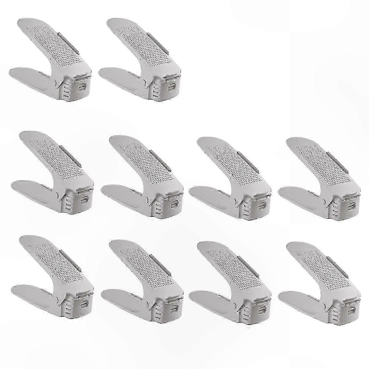 10-Pack Stackable Shoe Rack Organizer, Grey Double Layer Storage Solution for Space Efficiency