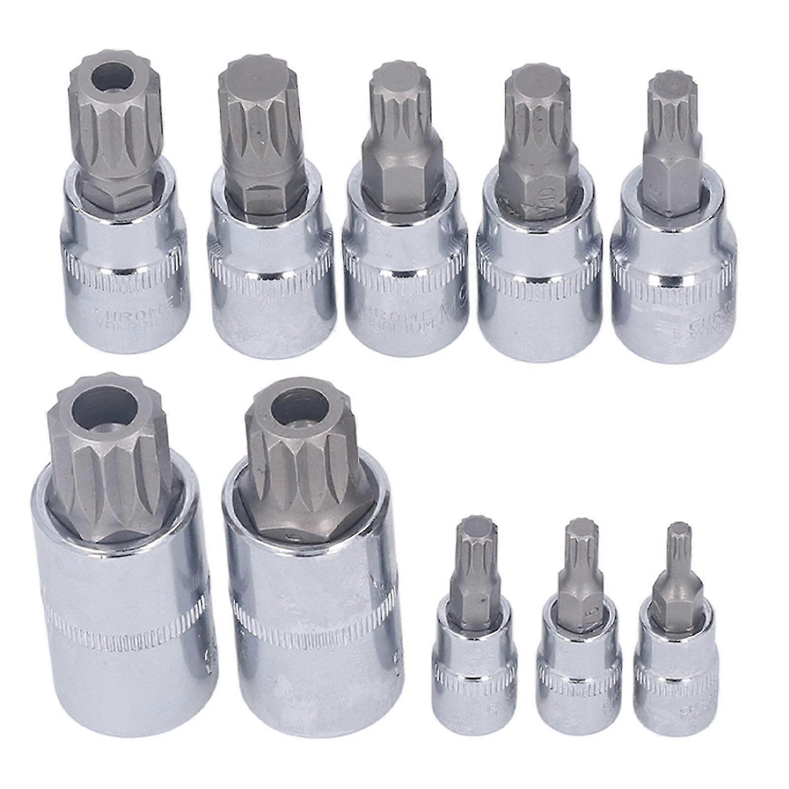 10 Pcs Triple Square Spline Bit Socket M4 To M18 1/4in 3/8in 1/2in Drive CR V Bit Socket Set with Storage Box
