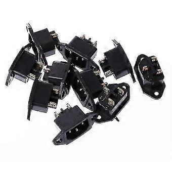 10 Pcs/set Ac 250v 10a 3-pin Terminal Iec320 C14 Inlet Power Plug Socket Black