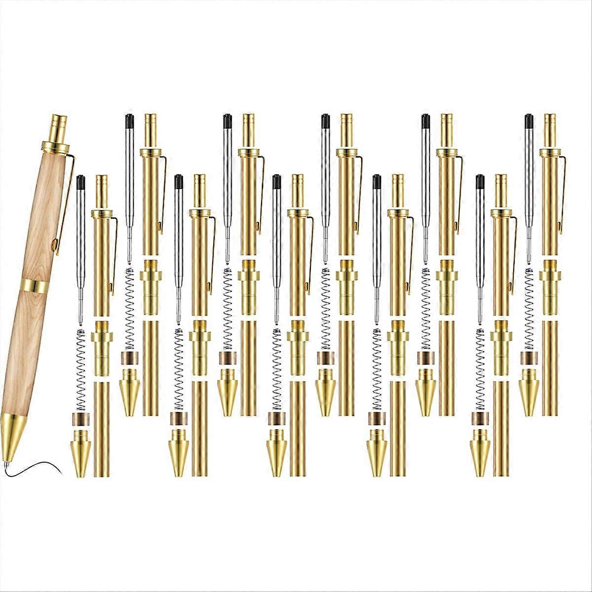 Each package comes with 10 fine-line pen sets, ensuring you have enough to fully explore your hands-on potential. We believe an ample supply a continuous flow of creativity for your beautiful projects. These pen sets are designed for 8mm drill bits, a typical size for woodturning, adding convenience and flexibility to your woodturning practice. The images also show the specific dimensions of the pen sets. Crafted with our high-quality iron and brass pen turning sets, you can immerse yourself in the world of woodturning. and sturdy, this gold-finished pen set provides stability and smoothness for your crafting experience, ensuring your confidently stand the test of time. The fine-line pen set for woodturning is ideal for beginners looking to join the world of woodworking. You can create exquisite pens for personal use or as personal gifts for loved . Its versatility opens up numerous possibilities for transforming ordinary wooden pieces into . Please note that this package only includes the pen turning set for woodturning; it does not include the lathe, shaft, drill bit, bushing, or wood blank. Color: As shown Material: Copper Package Contents: 10*pcs Retractable Pen Kit Only the above package content, other products are not included. Note: Light reflection and different displays may cause the color of the item in the picture a little different from the real thing. The measurement allowed error is +/- 1-3cm.