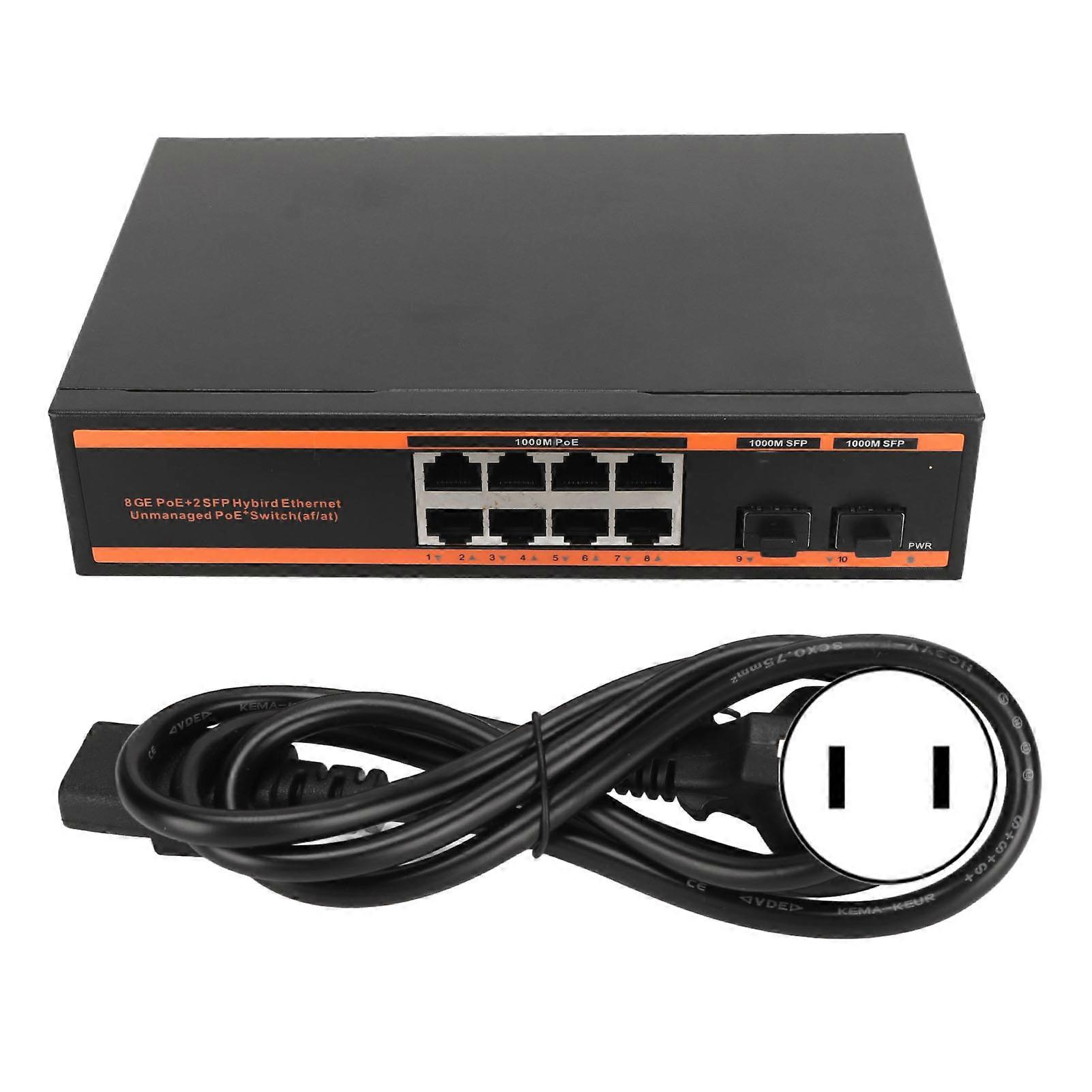10 Port PoE Switch 8 1000M PoE Port 2 1000M Uplink Port 150W Metal Fanless Unmanaged Gigabit Switch US Plug 100?240V