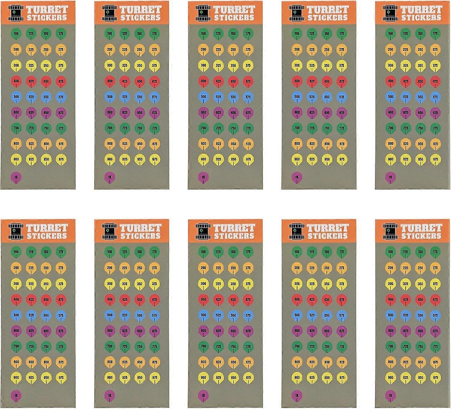 10 Rifle Scope Turret Sticker Sheets- Scope Dope Stickers for Long Range Shooting and Hunting -Use with Dope Card, Raging/Range Card, or DOPE Book - T