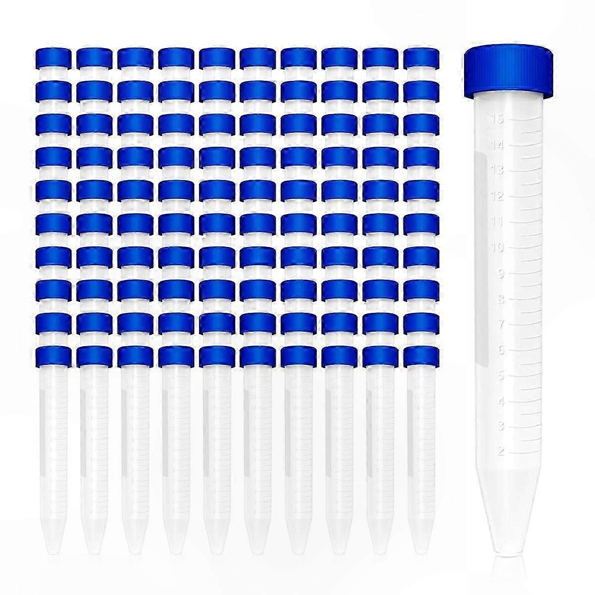 100 Pack 15ml Conical Tubes with Teat Design and 1pc Tube Rack for Lab Use