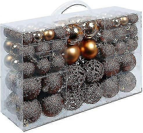Christmas gifts, Christmas tree plastic baublesPlasticColour BronzeOccasion ChristmasMaterial PlasticTheme HolidaysShape RoundVarious varieties: this package of Christmas Gifts contains 100 golden Christmas baubles in different varieties with which you can decorate your treeUnbreakable. The balls are made of plastic and are therefore unbreakable. Very practical if you have smaller children and/or petsHanging ring: each Christmas bauble has a practical hanging ring through which you can put a hook or ribbonYou can also use the Christmas baubles outdoors. The balls are resistant to moisture and cannot fall apartVarious sizes: the packaging contains 32 balls with a diameter of 6 cm, 36 balls with a diameter of 4 cm and 32 balls with a diameter of 3 cm