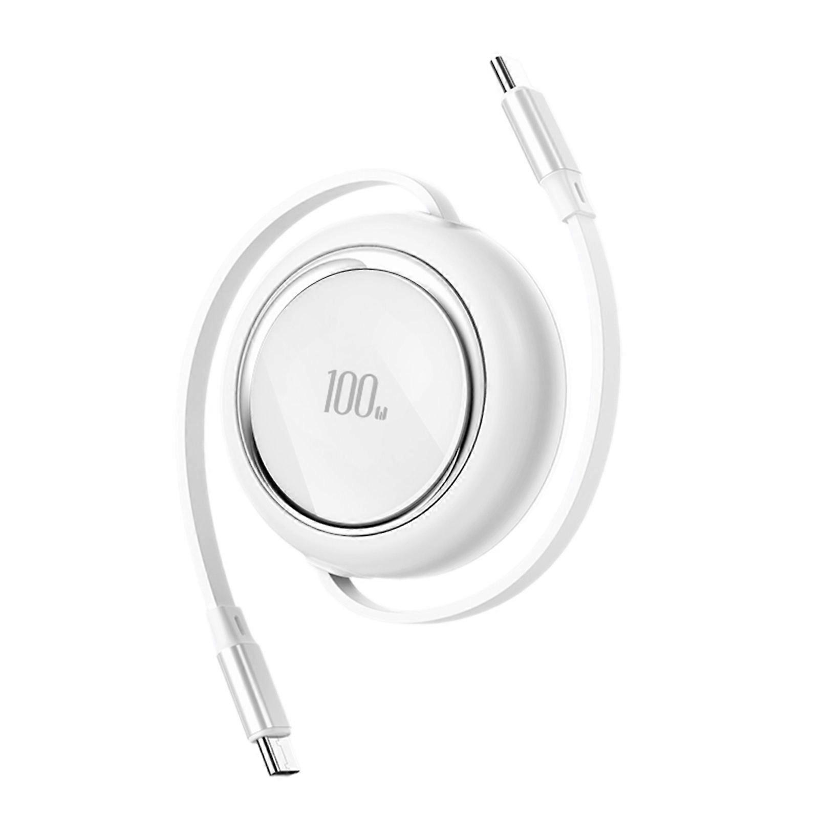 100W Type C to Type C Charging Cable Retractable USB Cable 480Mbps Data Sync Fast Charger Cord for Mobile Phone Tablets White
