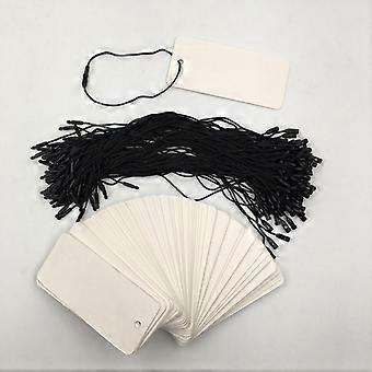 100x White Price Tags Rectangle Clothing Tag Marking Tag with Black String