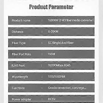 10/100m 2 Fiber Port 4 RJ45 Ethernet Media Converter 1310nm 1550nm Single Mode Simplex 20km SC EU Power Plug