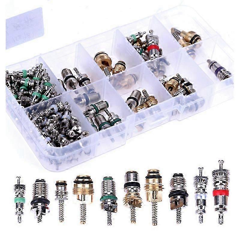 104Pcs Car Air Conditioner Valve Cores Assortment A/C AC Shrader Valve Core & Tool R134 R12 HVAC Val