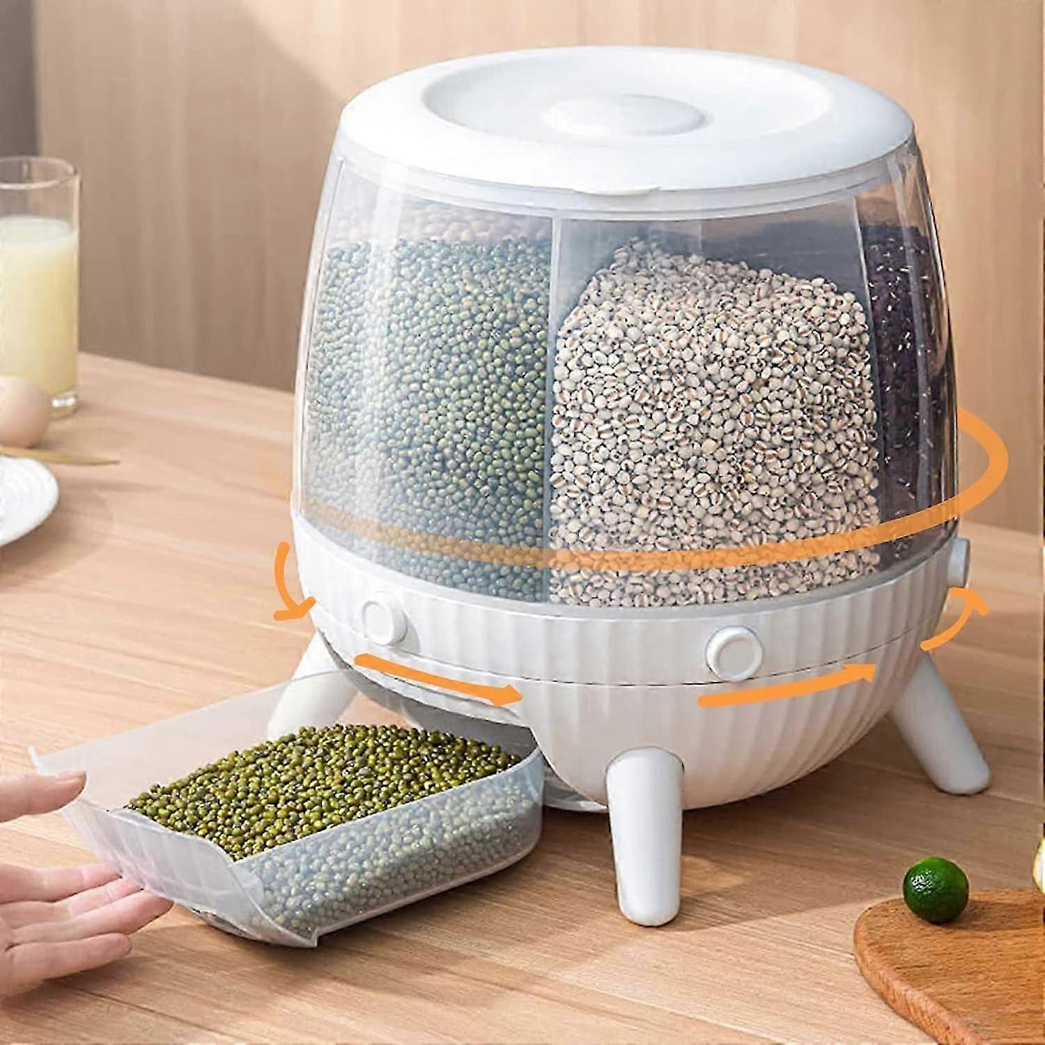 10L Rotating Grain Dispenser,6in1 Grain Dispenser Container Rotating, Food Dispenser with Measure Cup for Grain Storage Container