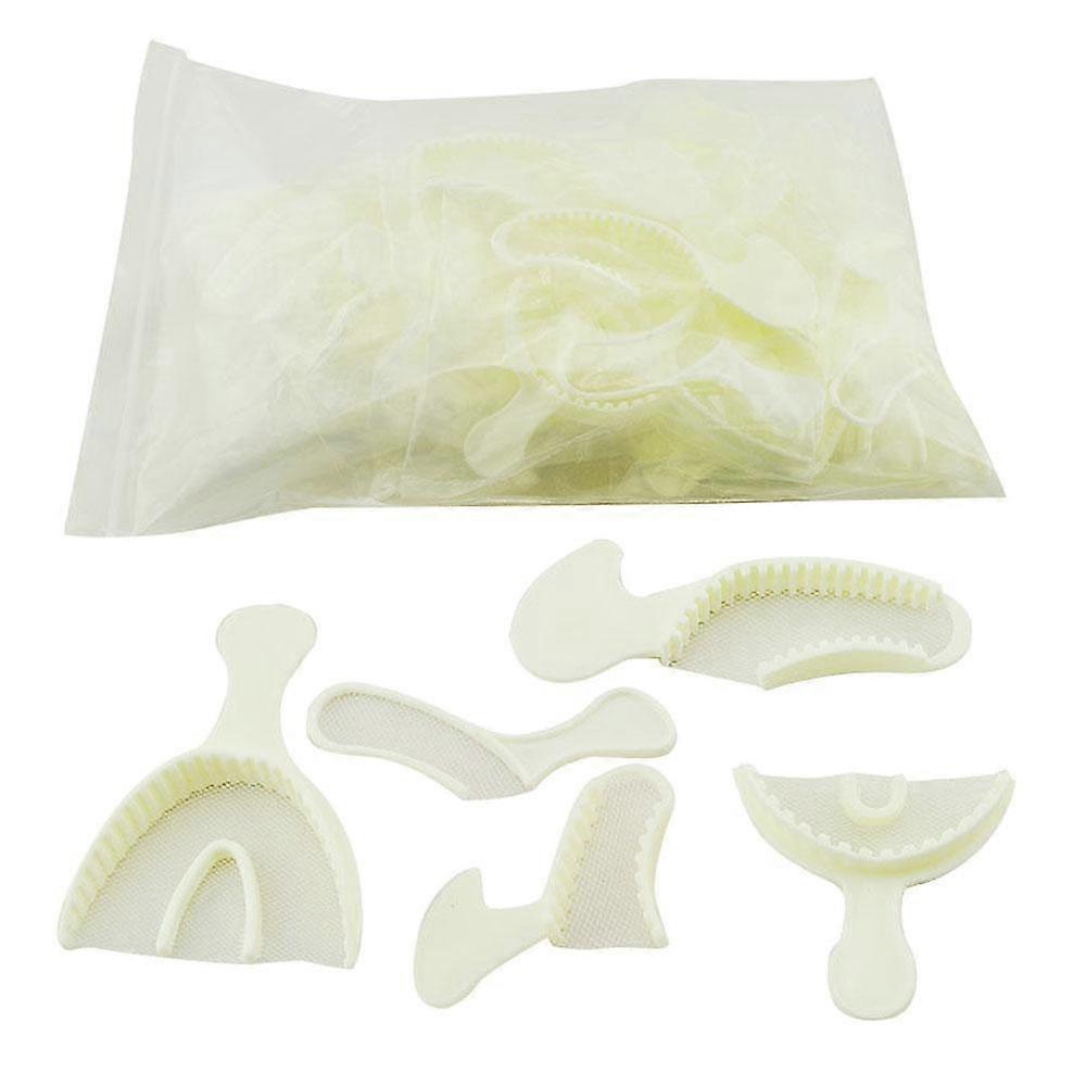 DescriptionCommodity Quality Certification : ceThis product may be intended for use by a health care professional use only. The seller may ask you to evidence you are a qualified health care professional entitled to buy and use such products in your country.Features:Smooth EdgesFor Bite Registration, impressions, and counter impressionsTray made of strong, rigid material that aids in the generation of consistent,distortion -free impressions.Compatible with a wide range of impression materialsWeb design,wide bites,sturdy, plastics and special wedges can keep the extraremaining, five size are suitable to all people.Large Full Arch TraySmall Full Arch TrayLarge Half Arch TraySmall Half Arch TraySS half Arch TrayColor: WhitePacking: 5pcs per bagPackage Include:10 Pack(50 pcs)Dental Disposable Impression tray