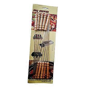 10PCS Barbecue Skewers With Wooded Handle Kabob Roasting Sticks Meat BBQ