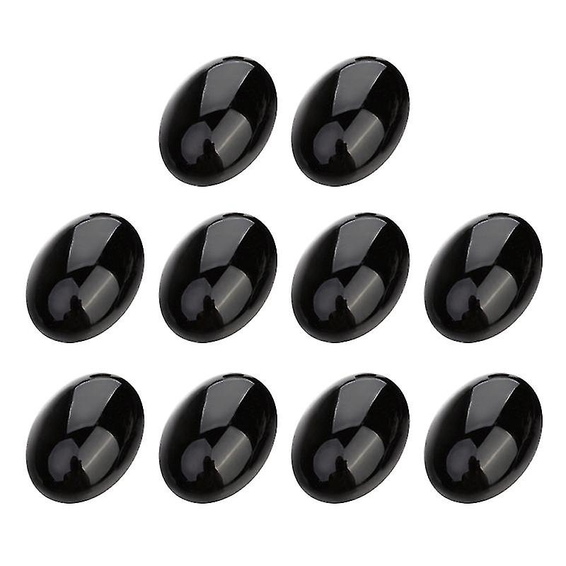 This is a set of oval shape black color stone cabochons. Feature - Color: Black. - Material: agate. - Size: About 1.3 x 1.8 x 0.7cm. - Black agate stone style can add delicate and attractive feeling to you decor. - This snap is quite unique with its pattern, you can choose the one you like for ring surface decor. - Oval shape flat base for jewelry and settings. - Wide applications: fit for decorations in jewelry, clock, picture, vase and other places.