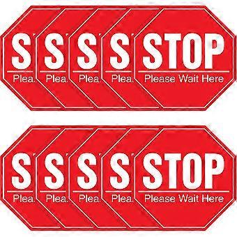 10pcs Stop Please Wait Here Sign Public Safety Distance Reminding Floor Decals