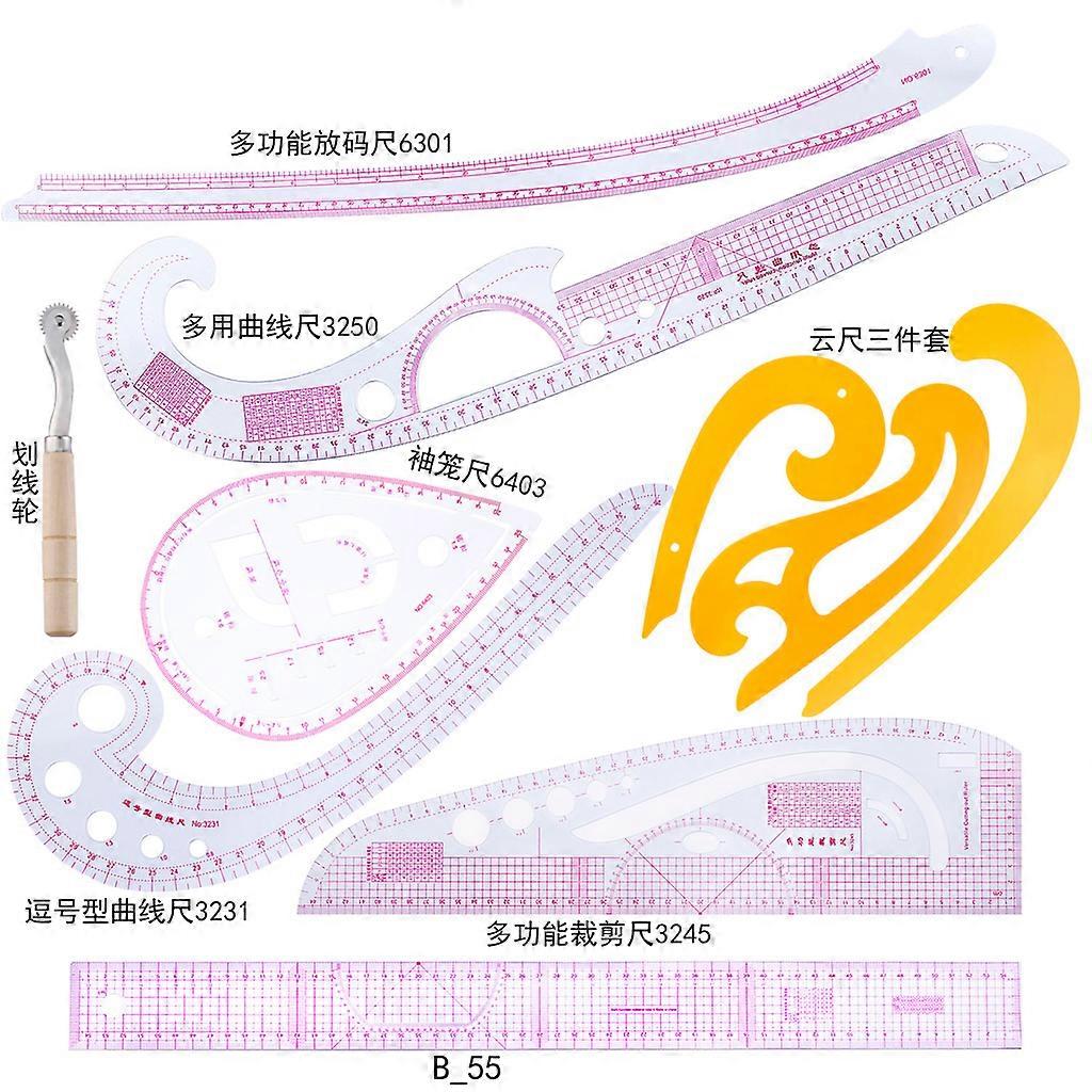 10Pcs/Set Tailor Drawing Comma Line Straight Cutting French Curve Ruler Sewing C