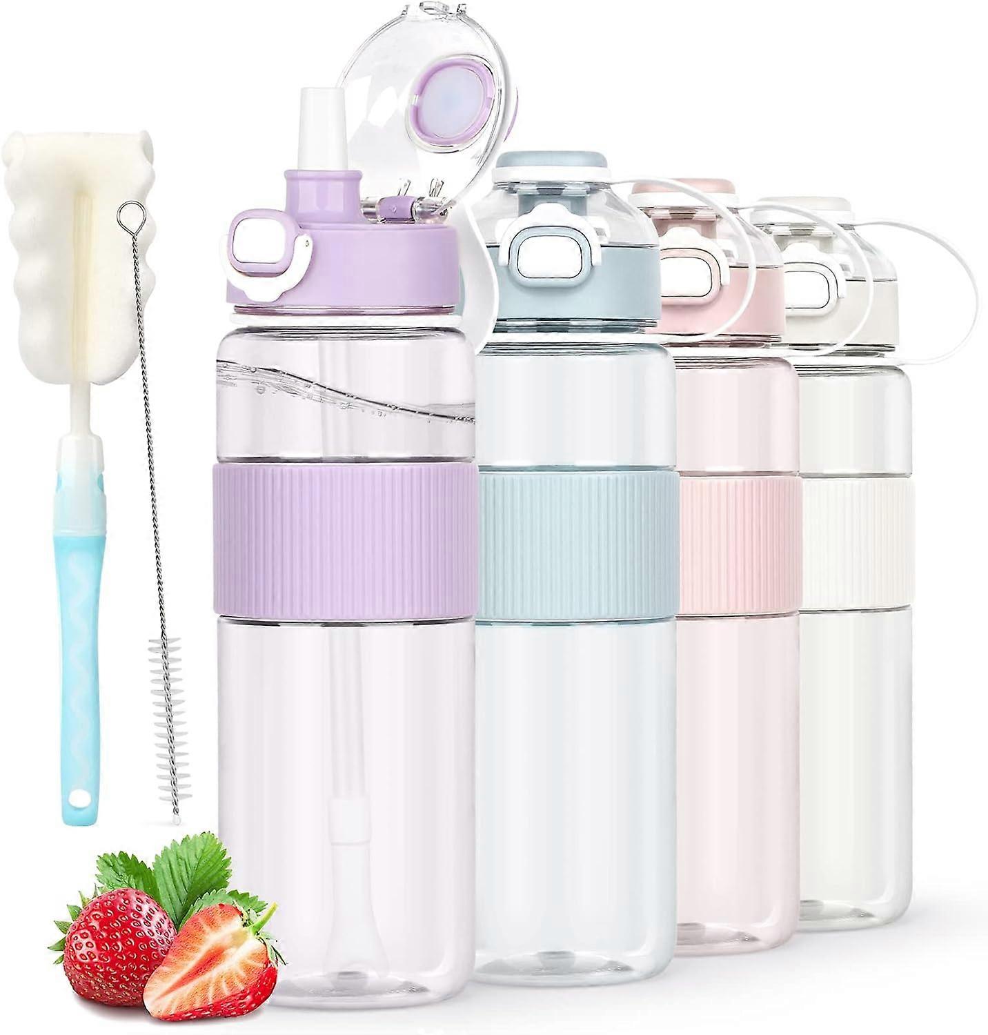 1100ml water bottle with straw, with bottle brush and stickers, BPA free, perfect for running, gym