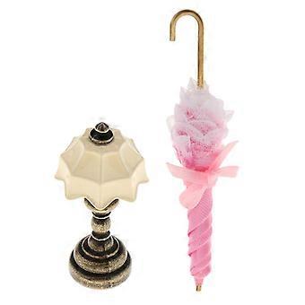 1/12 Dollhouse Min Desk Table Lamp Bronze Column Beige Lampshade And Parasol